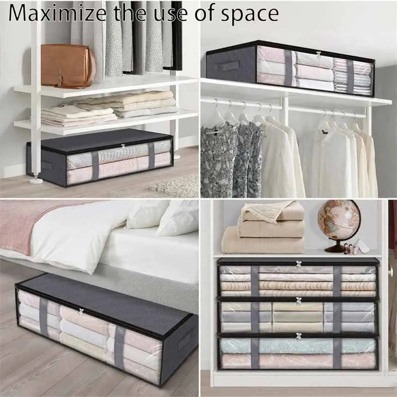 Space-saving underbed storage bags perfect for clothing, quilts, and bedding. Foldable design for easy storage when not in use. Ideal for bedrooms, closets, or dorm rooms.